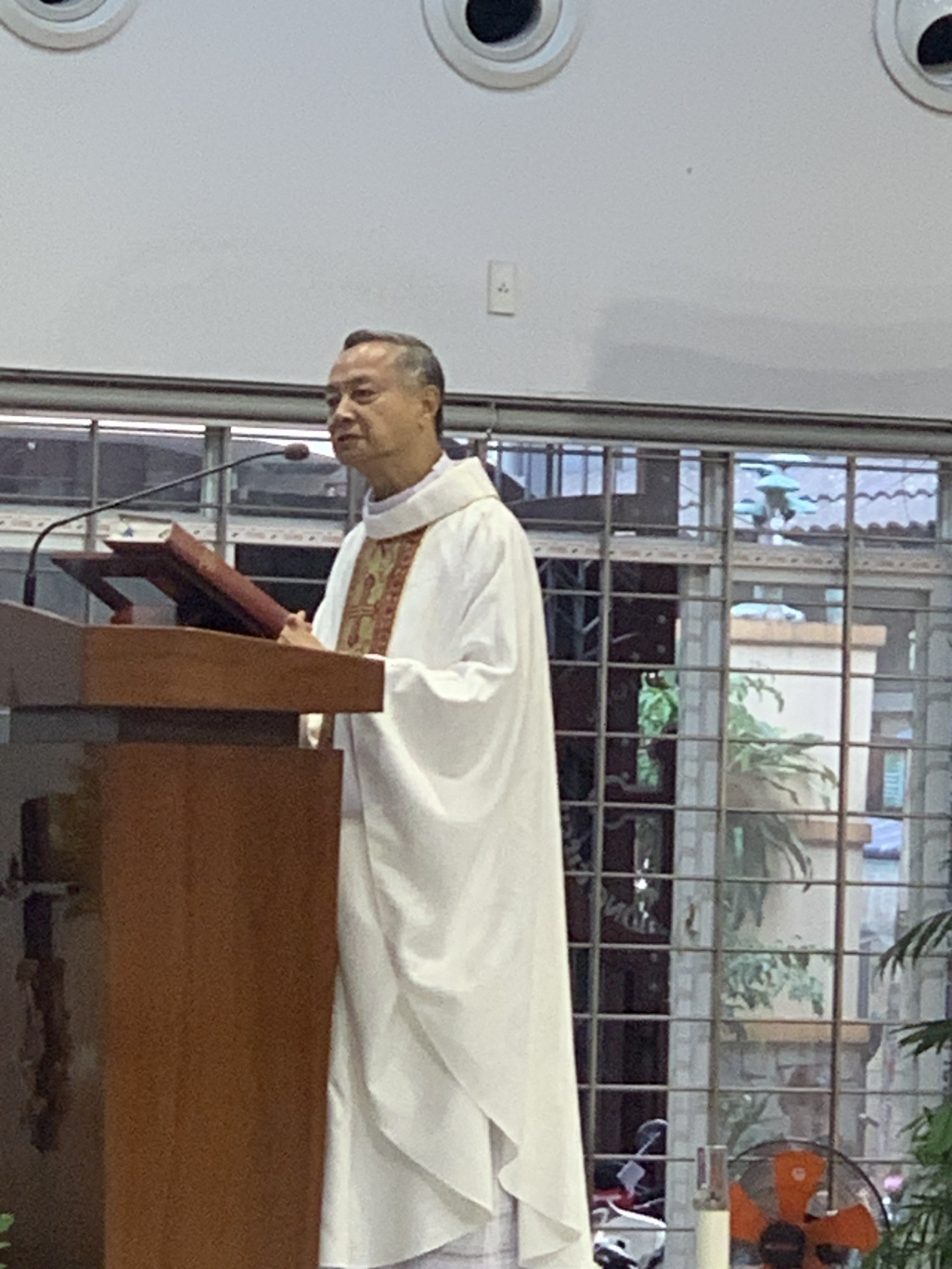 Bà i giảng lễ Lá do cha phụ tá Giuse Nguyễn Minh Duy giảng lễ