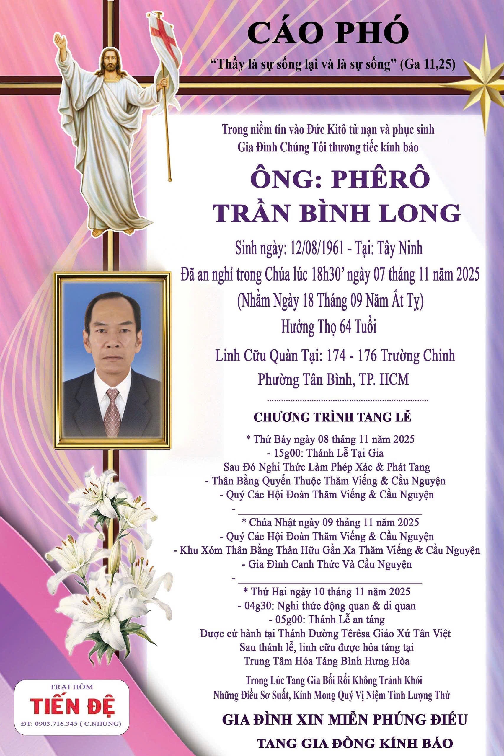 Thánh lễ tại gia và là m phép xác lúc 15g thứ bẩy 08/11/2025.