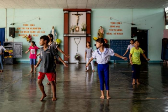 Trong khung cảnh nà y có ba sáng kiến rất lạ mắt vá»›i ngưá»i phương Tây chứng minh cho sức sống cá»§a Giáo há»™i địa phương. Ở Äắk Giấc, chỉ má»›i cách đây hai năm, linh mục Äa Minh Trần Văn VÅ© đã xây dá»±ng ở rìa thị trấn má»™t nhà thỠđáng kể, vá» diện tÃch cÅ©ng như vá» trang hoà ng, nhà thá» có thể chứ đến 8 000 ngưá»i và có bốn hang đá Äức Mẹ Lá»™ Äức và má»™t đà ng thánh giá khổng lồ. Hang đá Äức Mẹ Lá»™ Äức thì gần như ‘bắt buá»™c phải có’ ở các giáo xứ Việt Nam. Chung quanh là các giáo xứ nghèo, dù tòa nhà có các nét đặc biệt cá»§a các sắc dân địa phương nhưng trông có vẻ lạc Ä‘iệu vá»›i nét huy hoà ng cá»§a nó. Dù sao đó là niá»m tá»± hà o cá»§a giáo dân. Ở đây cÅ©ng như ở các nÆ¡i khác, chúng ta chỉ cần nhá»› lại các nhà thá» chÃnh tòa thá»i Trung cổ cá»§a tây phương, các nhà thá» nà y đã được xây trong các Ä‘iá»u kiện thiếu thốn váºt chất vô cùng. Vá»›i Chúa thì không có gì là … quá đẹp! Khi há»i cha xoay xở tà i chánh ở đâu để xây nhà thá», linh mục VÅ© cưá»i trả lá»i: “Tất cả Ä‘á»u là hồng ân!†Trong Giáo há»™i cÅ©ng như trong cả xã há»™i Việt Nam, sá»± tương trợ vá» tà i chánh và bảo trợ rất tÃch cá»±c, cả cá»™ng đồng ngưá»i Việt ở nước ngoà i. Tiá»n mặt luân lưu dá»… dà ng giữa các linh mục và giáo dân. Và đừng quên 200 giáo dân Äắk Giấc là m việc thiện nguyện cho giáo xứ.