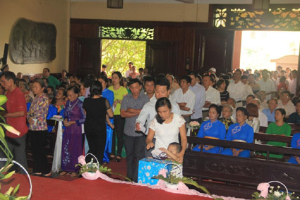 Nhằm khÃch lệ giáo dân hiệp nguyện khi dâng lá»…, cÅ©ng như nhắc nhở há» quan tâm cách cụ thể hÆ¡n nữa đến sứ vụ loan báo Tin Mừng cá»§a Giáo Há»™i, nghi thức dâng cá»§a lá»… hôm nay được tổ chức đặc biệt. Tiếp sau Ä‘oà n dâng lá»… váºt, đông đảo giáo dân sắp hà ng tiến lên cung thánh dâng cá»§a quyên góp cho công cuá»™c truyá»n giáo trong Giáo Há»™i, dẫn đầu là các linh mục. Má»i ngưá»i trân trá»ng thà nh kÃnh đặt chiếc phong bì nhá» và o trong thùng dâng cúng đặt trước bà n thá».