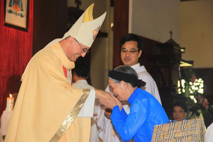 Trong những lá»i chúc mừng Vị Äại diện Tòa Thánh và o ngay đầu Thánh Lá»…, Äức Cha Giuse Châu Ngá»c Tri, Giám mục Giáo pháºn Cao Bằng, đã cám Æ¡n Tòa Thánh, qua sá»± hiện diện cá»§a Äức Tổng Giám mục Äại diện, vá» sá»± quan tâm đến công cuá»™c truyá»n giáo tại vùng đất “vừa ngoại biên, vừa ngoại đạo†vá»›i tá»· lệ giáo dân rất má»±c khiêm tốn là 0,35%  dân số, và 85% dân cư thuá»™c các dân tá»™c anh em, ngưá»i kinh trở thà nh dân tá»™c thiểu số vá»›i 15% dân số. Ngà i cÅ©ng hóm hỉnh chia sẻ vá»›i Vị Äại diện Tòa Thánh và cá»™ng Ä‘oà n hiện diện vá» vị trà địa lý cá»§a Lạng SÆ¡n Cao Bằng, trên bản đồ thế giá»›i, lại gần Rôma nhất so vá»›i các Giáo pháºn khác tại Việt Nam, nên tuy nằm vùng ngoại biên, Giáo pháºn luôn rất gần vá»›i con tim cá»§a Giáo Há»™i.