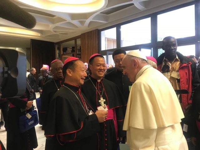 Sau cùng, giám mục You Heung-sik nhắc đến việc ngà i có gặp hai giám mục Trung quốc có mặt ở Thượng Há»™i đồng: “Khi tôi Ä‘á»c tin có thá»a hiệp giữa Tòa Thánh và Trung quốc, tôi tháºt sá»± vui mừng vì đó là thà nh quả mà Äức Gioan-Phaolô II cÅ©ng như Äức Bênêđictô XVI và Äức Phanxicô mong ước từ lâu… Và rồi tôi đến Rôma, hai giám mục Trung quốc và má»™t linh mục cùng đến. Tôi không nói được tiếng Trung quốc nhưng tôi hiểu được chữ viết, tôi đến gần hai giám mục trong bữa ăn sáng và bữa ăn trưa, tôi viết tên tôi bằng tiếng Trung quốc và chúng tôi trao đổi số Ä‘iện thoại, từ đó mối quan hệ lá»›n dần. Vá»›i tôi, đó là anh em phải yêu thương… đây là lần đầu tiên há» tham dá»± thượng há»™i đồng. Hai giám mục xem tôi như ngưá»i anh cả vì tôi lá»›n tuổi hÆ¡n.